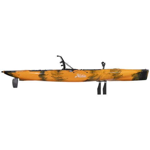 This fully-loaded fishing machine is built for every conceivable fishing expedition, whether you’re prowling the ocean for monster gamefish or stalking bass in your favorite freshwater fishing hole. Hobie has advanced the sport of kayak fishing with Kick-Up Fins that automatically retract upon impact. The extra-wide standing deck offers an improved casting platform and convenient vantage point for sight fishing, allowing for superior vision from above while the revolutionary Guardian Transducer Shield gives you multidimensional vision below. The adjustable Vantage CTW seat provides 1.5" of extra width and lumbar support for unmatched room and comfort for long days on the water. The Hobie H-Rail with integrated patented RAM® Hand-Track™ and numerous high-capacity storage compartments deliver the ultimate customization and organization in accessory mounting, ensuring that all of your gear is at your fingertips. Powered by the MirageDrive 180 with Kick-Up Turbo Fins, this fine-tuned angling vessel is highly versatile, fast, quiet, and exceedingly nimble. Featuring our Kick-Up Rudder system with dual steering capabilities, combating drift and navigating tight water has never been easier.