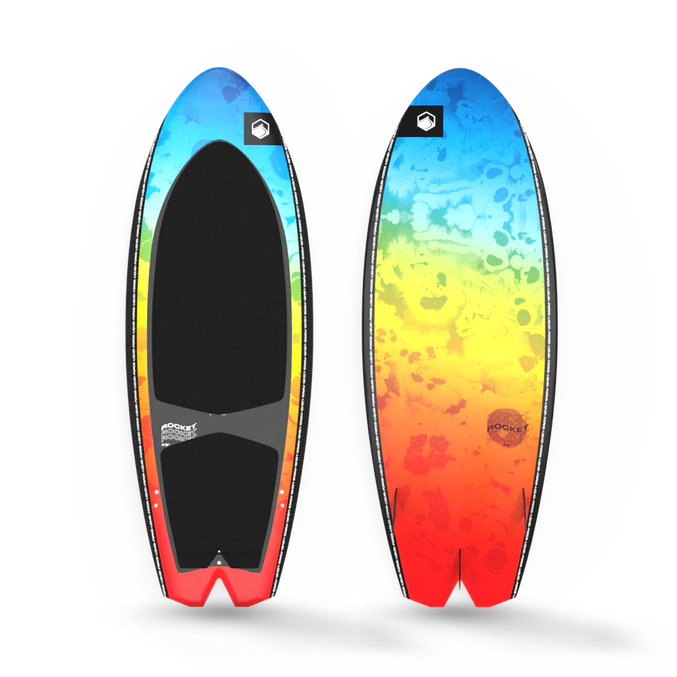 The Liquid Force Rocket wakesurf board is designed with a winged swallow tail for superior stability, while a single to double concave hull gives a smooth, graceful ride. Utilize it as a twin "fish" or a thruster for extra thrust along the wave.